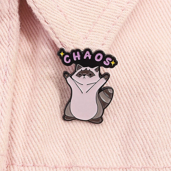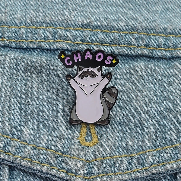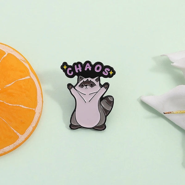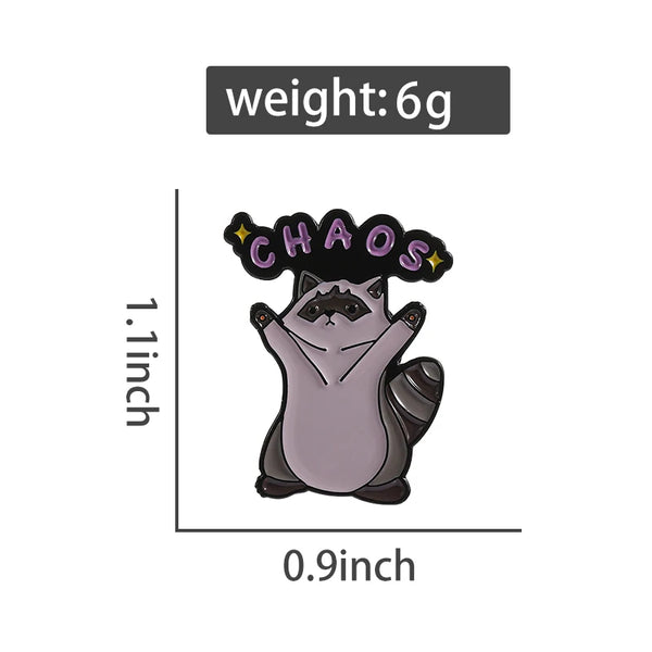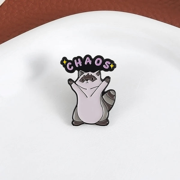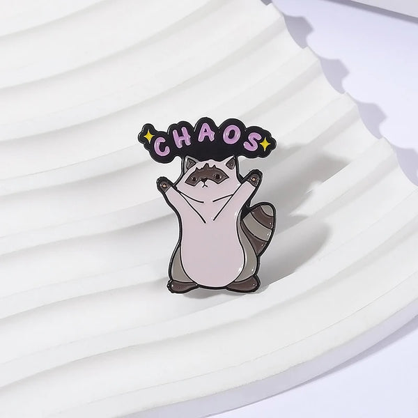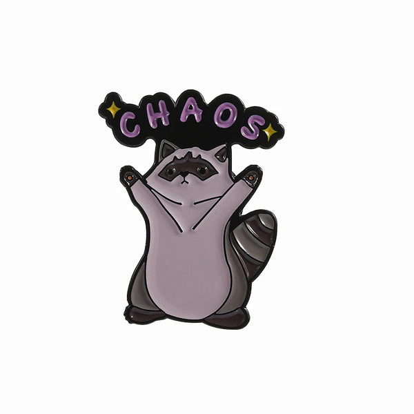 Bring a little delightful disorder wherever you go with this Chaos Raccoon Enamel Pin. Featuring an adorable raccoon throwing its paws in the air beneath a pastel “CHAOS” cloud, this pin is perfect for anyone who thrives on silly energy, low-key mischief, or pure chaotic vibes.