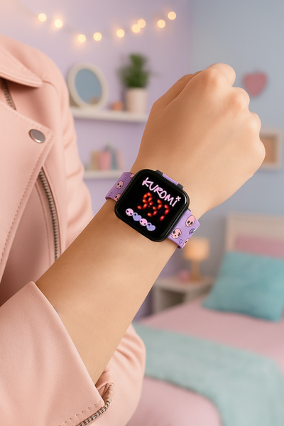 Bring a touch of cheeky charm to your everyday style with this Kuromi LED Digital Watch. Featuring Sanrio’s mischievous yet adorable Kuromi on a pastel lavender strap, this watch combines fun design with practical function — perfect for teens, collectors, and anyone who loves to stand out.