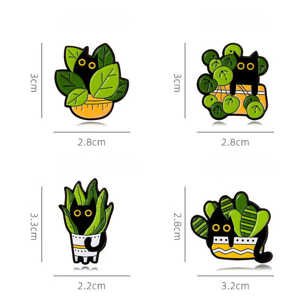 Bring a touch of leafy charm to your outfits and accessories with these Plant Cat Enamel Pins — a playful set featuring curious black cats hiding inside vibrant green houseplants. Each pin blends bold colours with adorable expressions, creating the perfect mix of quirky, modern, and irresistibly cute.