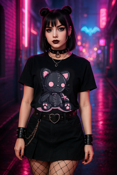 Embrace your dark side with this Gothic Kawaii Cat T-Shirt, featuring a mysterious black cat adorned with delicate scars and a soft, haunting expression. Designed for those who find beauty in imperfection, this tee blends gothic elegance with kawaii charm — a perfect statement for your alt streetwear look.