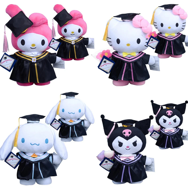 Celebrate a special milestone with a dose of cuteness! These Sanrio Graduation Plush Toys feature Kuromi, Cinnamoroll, Hello Kitty, and My Melody dressed in adorable graduation gowns and caps — the perfect way to say “You did it!” with kawaii flair.