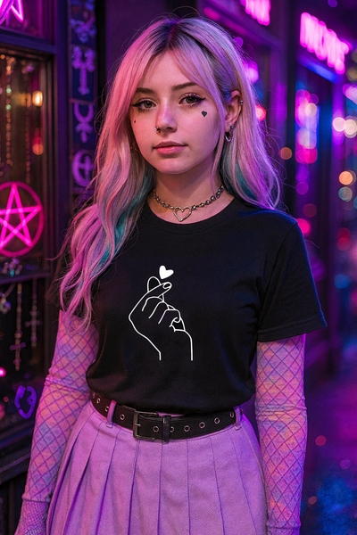 Spread good vibes and K-pop energy with this adorable Finger Heart T-Shirt, available in classic black or white. Featuring a subtle embroidered finger-heart design, itβs the perfect mix of minimalist style and cute expression β ideal for everyday wear or gifting to your favourite person.