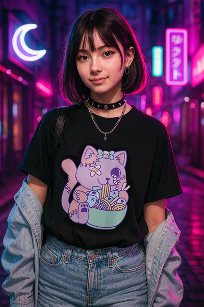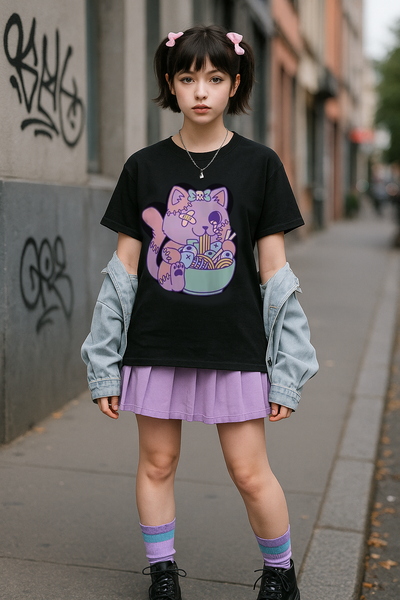 π«β¨ Pastel Goth Cat Ramen T-Shirt β Cute Chaos in Every Bite π€π
